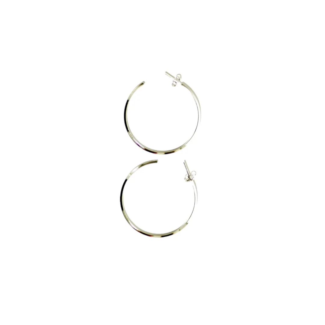 ARGOLA LISA MEDIA QUADRADA - BANHADO A RÓDIO BRANCO
