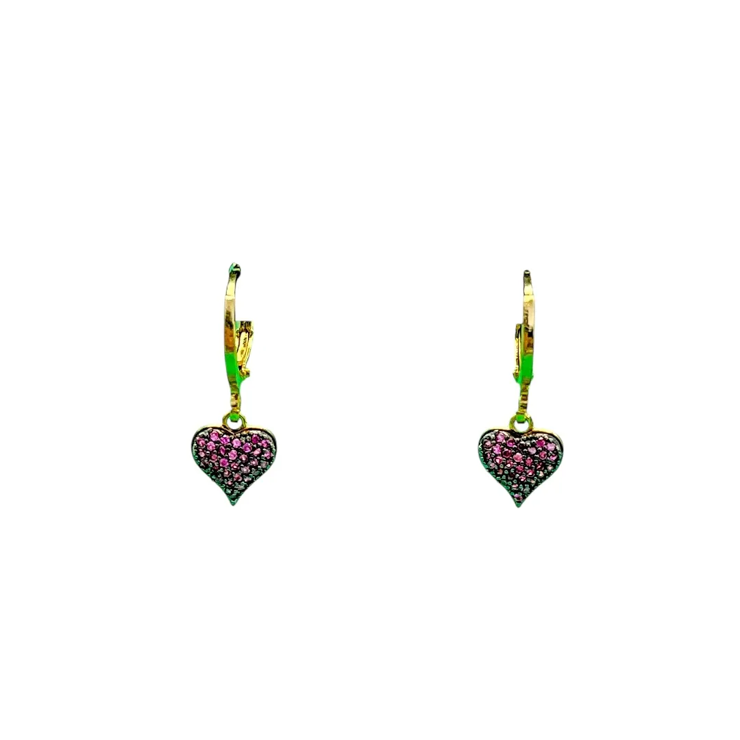 BRINCO ARGOLA COM CORAÇÃO PENDURADO CRAVEJADO PINK - BANHADO A OURO 18KConfira opiniões e avaliações de clientes!