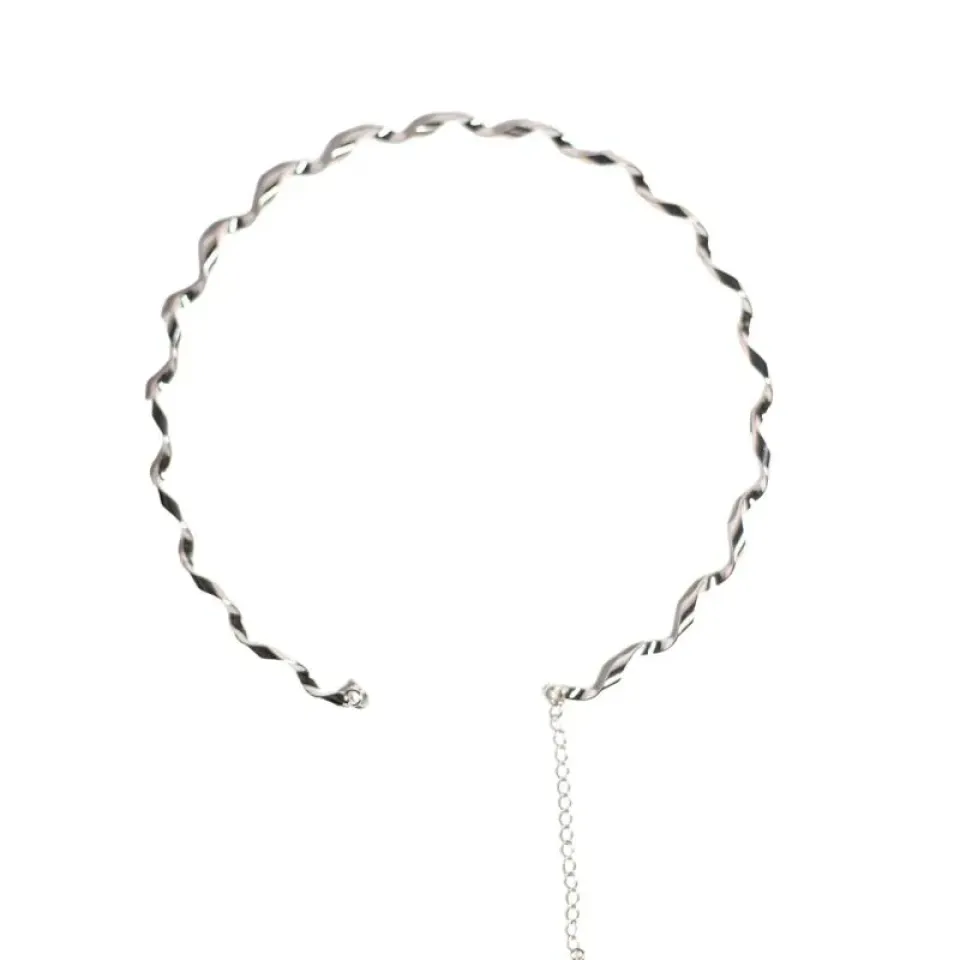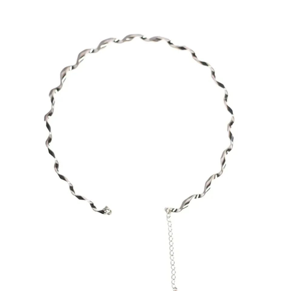 CHOKER RÍGIDO TORCIDO COM EXTENSOR - BANHADO A RÓDIO BRANCO