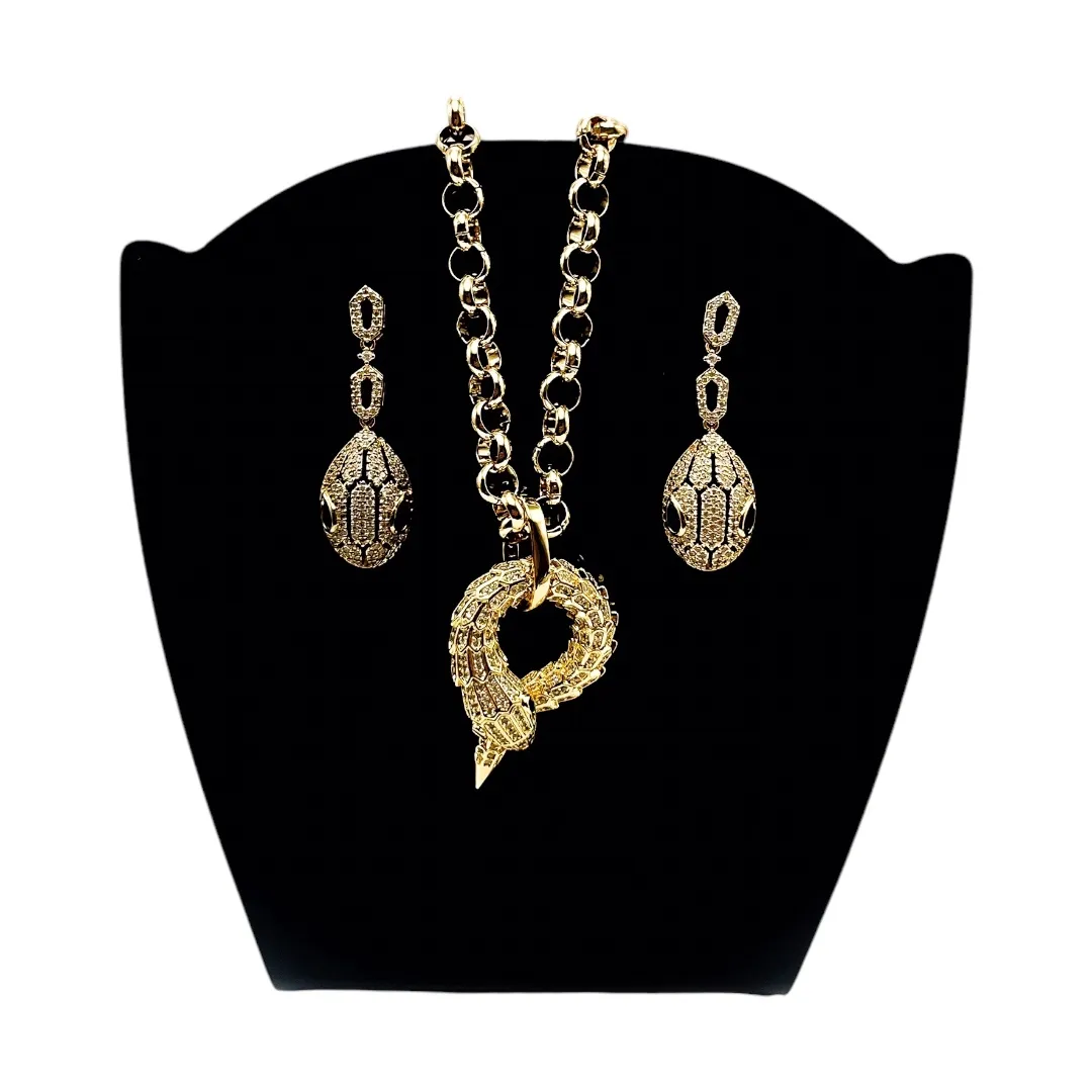 CONJUNTO REPLICA BVLGARI CORRENTE ELO PORTUGUES GROSSO COBRA E BRINCO COM ZIRCONIA CRISTAL E VERDE - BANHADO A OURO 18KConfira opiniões e avaliações de clientes!